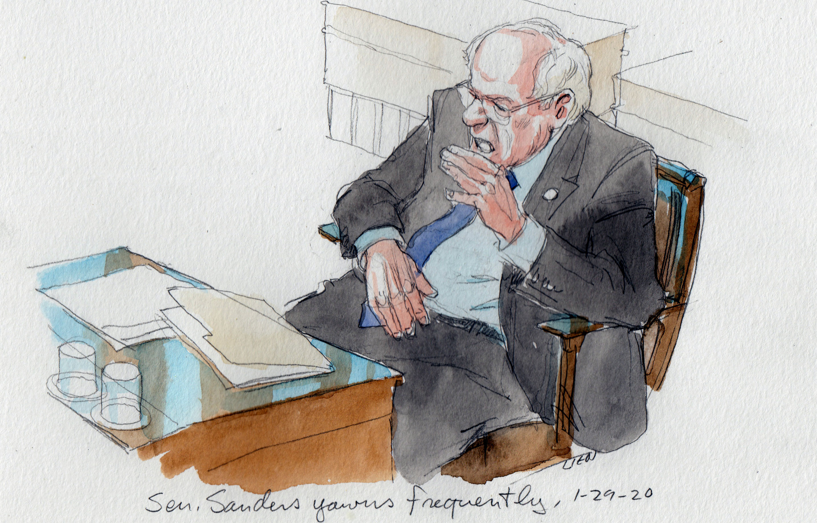 Nyt Graphics On Twitter Today Courtartist Captured A Yawning Bernie Sanders Perhaps Tired From His Travels Back And Forth Between Iowa And Washington Https T Co Avvrrkcixs Https T Co Eirqjv6czw Twitter